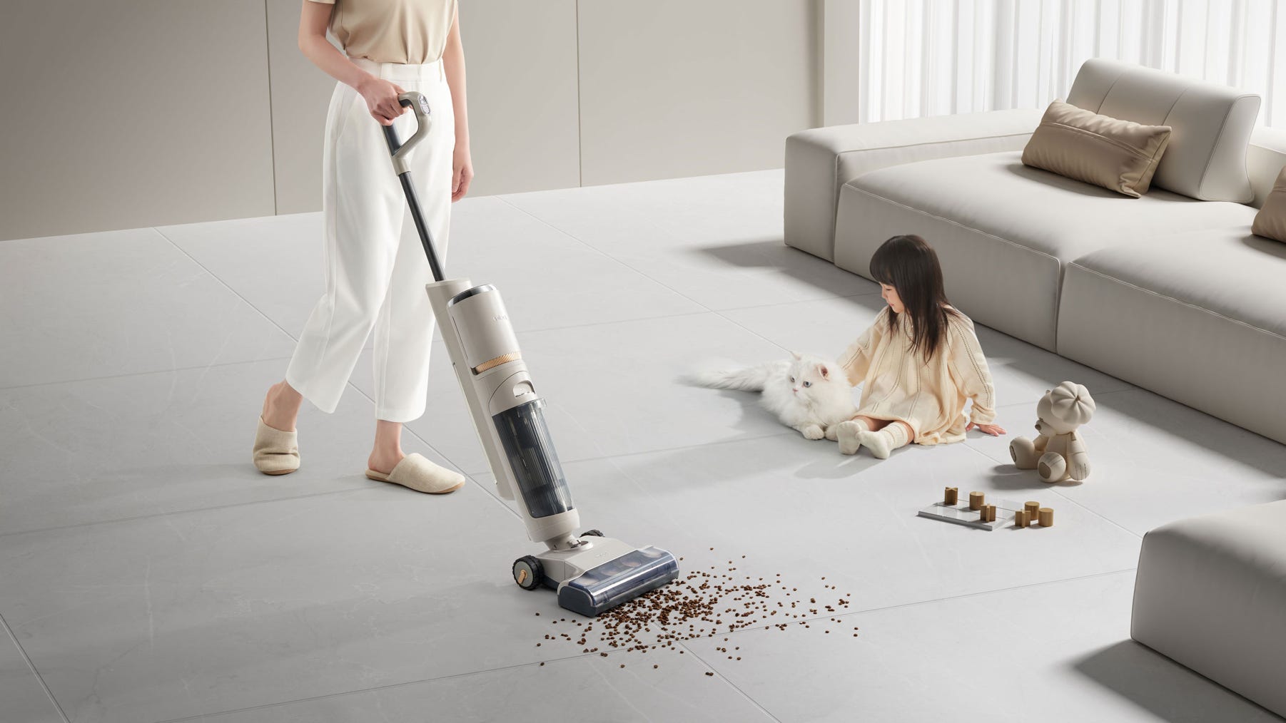 专门为年轻消费群体设计,相比上一代更安静、更轻巧,在体积、功能和价格上均能满足其需求。迷雾蓝、奶油色两款潮流色彩有别于传统洗地机的黑灰白,更时尚,与家居空间的融合度更高。