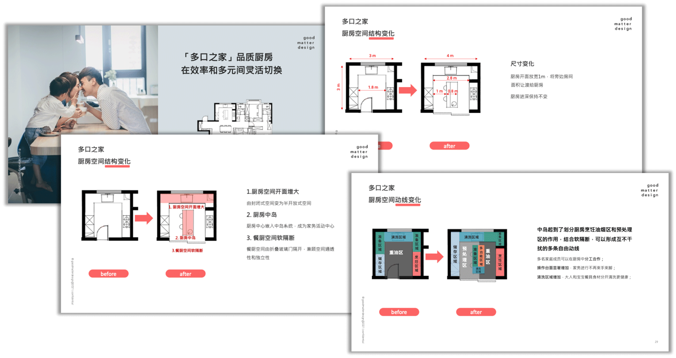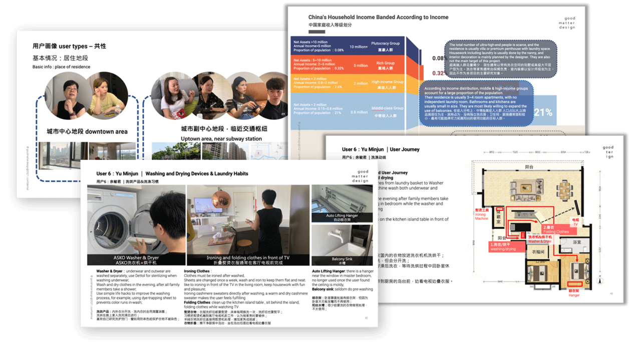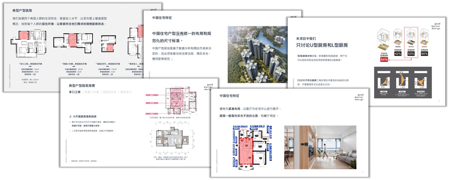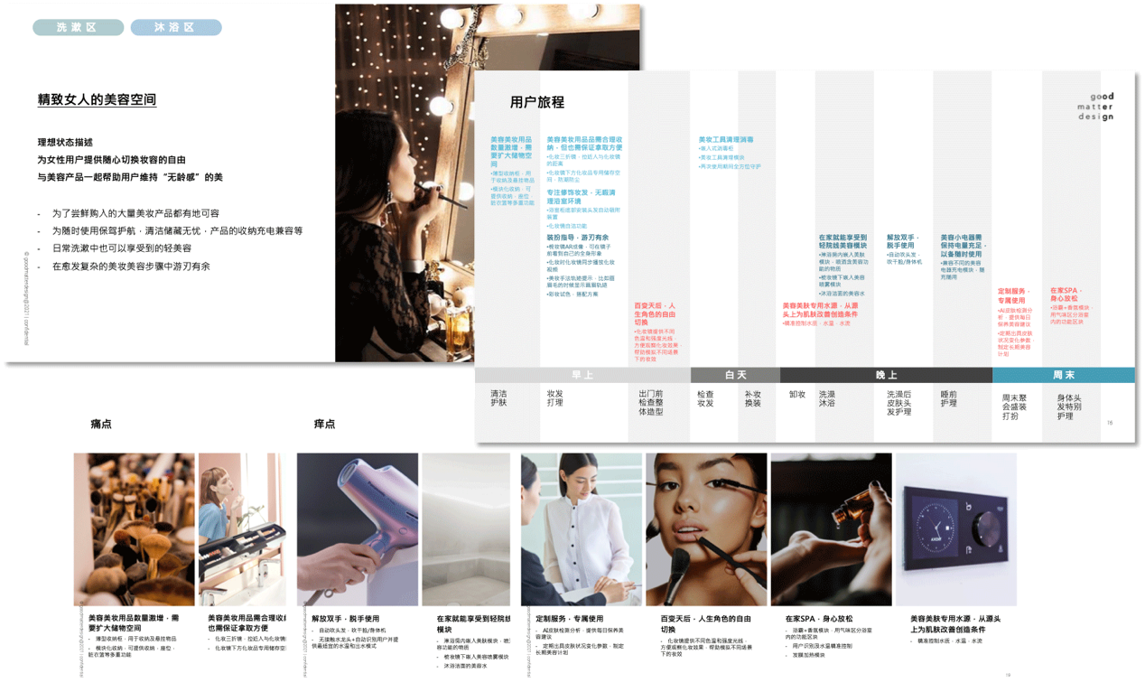 因此goodmatter创新的采用了用户成长追踪的研究方法,找到过去和现在之间用户生活习惯的改变点;同时用工作区域代替使用上的用户旅程,有效解决空间中的重叠需求;空间的思维处理空间产品问题,可以精细化创造理想生活空间产品提案。