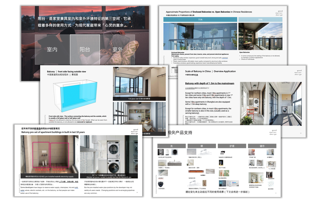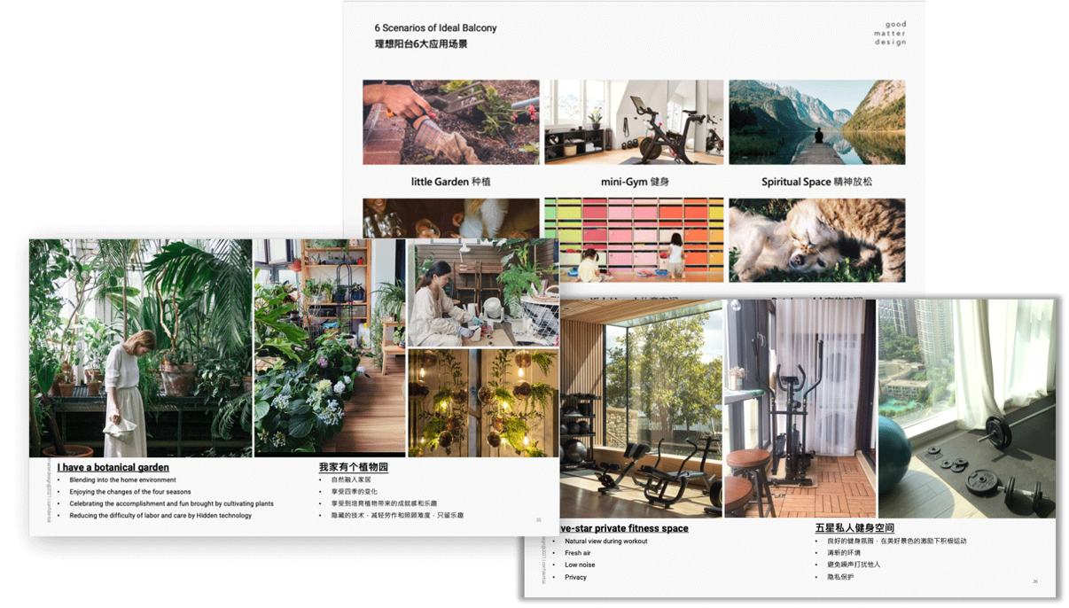 通过项目goodmatter创新提出【空间产品化】概念,即将空间打包为整体产品进行规划。2022年以阳台为首发,为松下4大目标人群找出阳台上生活痛点以及适合他们的理想生活提案,并辅助空间产品创新设计。